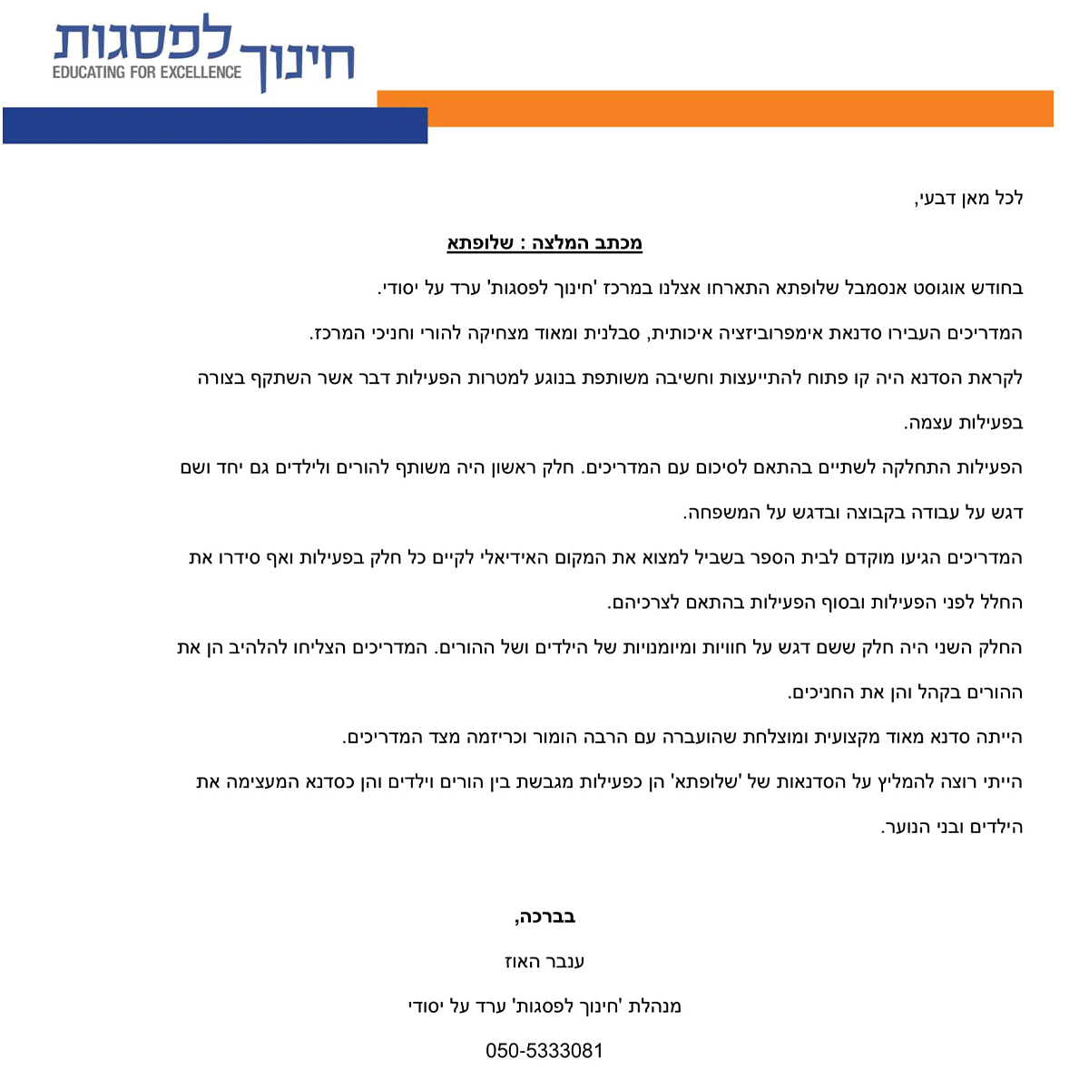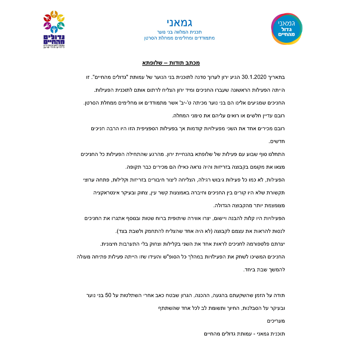 בתום הסדנה, בני הנוער יצאו עם כלים חשובים שיעזרו להם להתמודד עם אתגרי היומיום, לתקשר טוב יותר עם הסביבה, ולבטא את עצמם בצורה אותנטית ובונה.