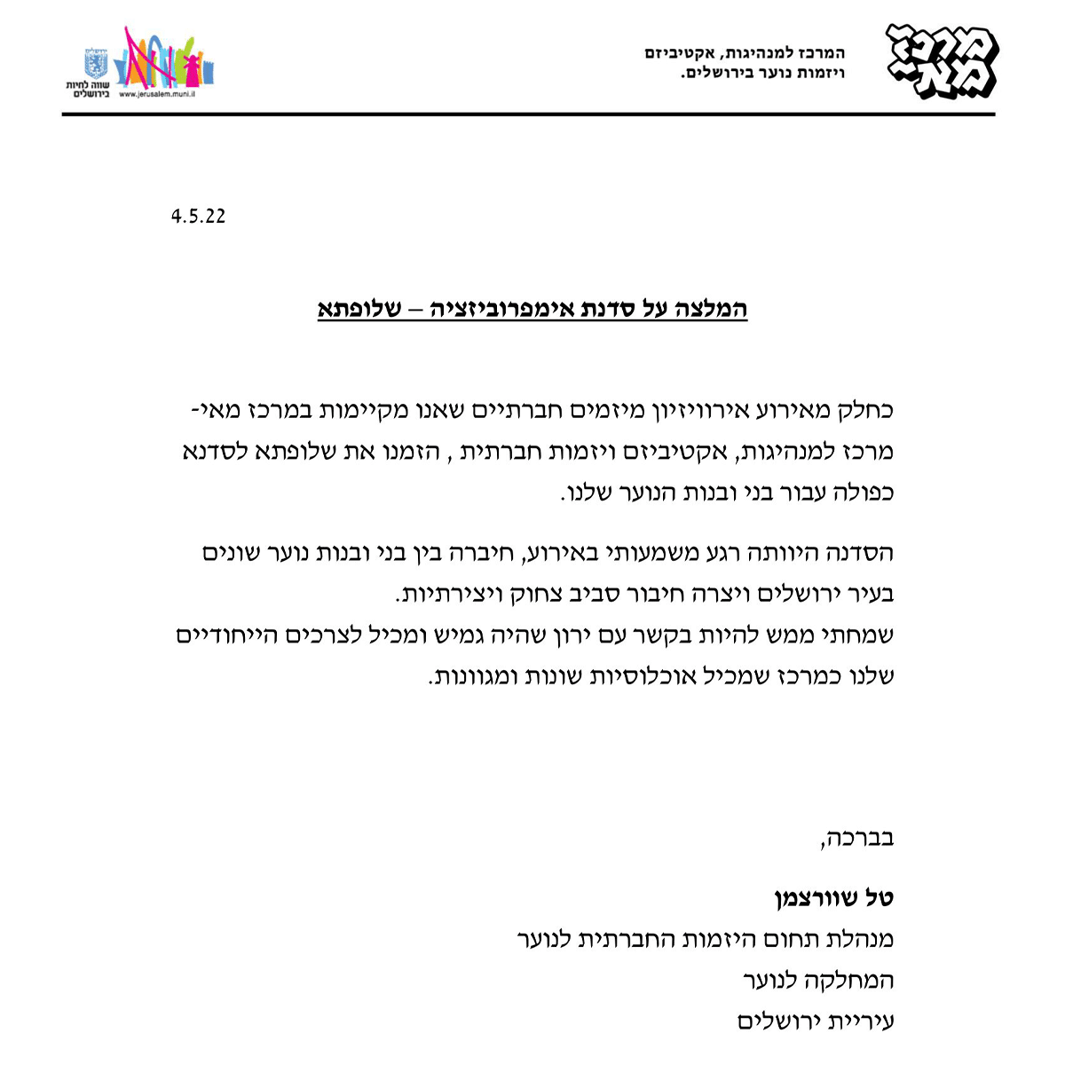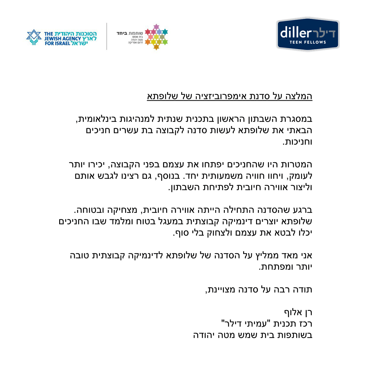 בסדנה נעסוק בעקרון ה"כן ו…" ונלמד איך אפשר ליישם אותו גם בחיים האישיים – איך לקבל רעיונות חדשים, לשתף פעולה עם אחרים בצורה פתוחה ומכילה, ולבנות דינמיקה קבוצתית בריאה.